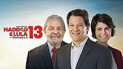 | Candidatos | Fernando Haddad (presidente) Manuela D'Ávila (vice) |