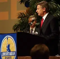 A campanha presidencial de Gary Johnson em 2012, ex-29º governador do Novo México, foi anunciada em 21 de abril de 2011. Ele declarou sua candidatura à nomeação do Partido Republicano para Presidente dos Estados Unidos. Em 28 de dezembro de 2011, Johnson retirou sua candidatura à nomeação republicana e anunciou sua candidatura à nomeação presidencial de 2012 do Partido Libertário. A Convenção Nacional Libertária de 2012 [en] foi realizada no primeiro fim de semana de maio de 2012. Em 5 de maio de 2012, após promover suas posições políticas de orientação libertária aos delegados, Johnson recebeu a maioria dos votos na convenção e tornou-se o candidato presidencial oficial do Partido Libertário para 2012. Em 6 de novembro de 2012, Johnson obteve pouco menos de 1% dos votos populares na eleição geral, totalizando mais de 1,2 milhão de votos, mais que o dobro do que a chapa Barr/Root recebeu em 2008. Esse foi o resultado mais bem-sucedido para uma candidatura presidencial de terceiro partido desde a eleição de 2000, e o melhor na história do Partido Libertário em número de votos até então.[4][5] Johnson concorreu novamente em 2016 e recebeu quase quatro vezes o total de votos de 2012.