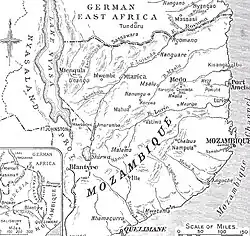 O deflagrar da I Guerra Mundial opôs portugueses a alemães em margens opostas do Rovuma e motivou o envio de novos contingentes de soldados para o território. Portugal ocupou o Triângulo de Quionga a 10 de Abril de 1916 e o Planalto dos Macondes entre Abril e Julho de 1917, com uma força de 2000 macuas.[45] Ainda em 1917 deu-se a revolta do Barué e enquanto esta durava os alemães invadiram Moçambique com 300 soldados e 1700 askari, o que motivou os régulos ajauas e macuas a revoltarem-se também, mas após os alemães se terem retirado os portugueses pacificaram o território.[45]