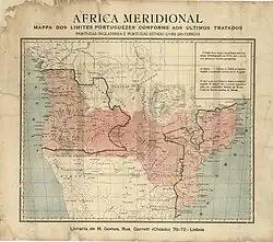 A partir de meados do séc. XIX, várias potências europeias lançaram-se também na partilha de África, o que deu azo a disputas internacionais. Na Conferência de Berlim, Portugal viu as suas reivindicações à margem esquerda do rio Congo e a Cabinda reconhecidas.[14] Quaisquer reivindicações com base na descoberta ou em relações diplomáticas e comerciais com as autoridades nativas, porém, foram repudiadas, para serem substituídas pela lógica da ocupação efectiva, o que influenciou a política portuguesa.