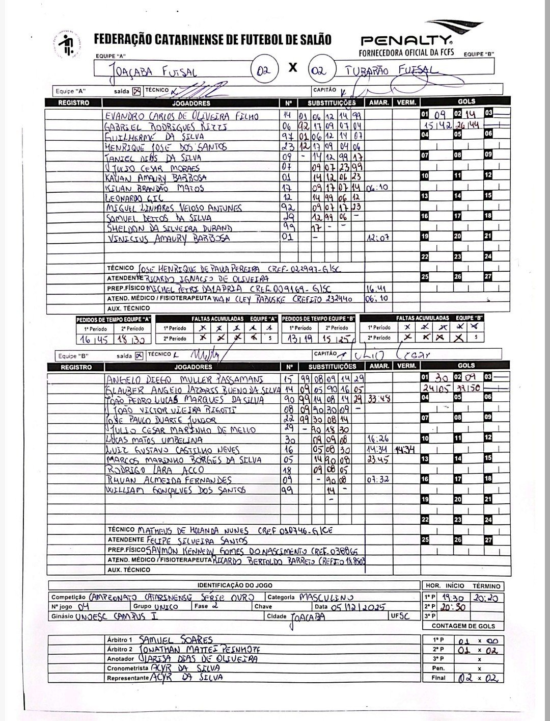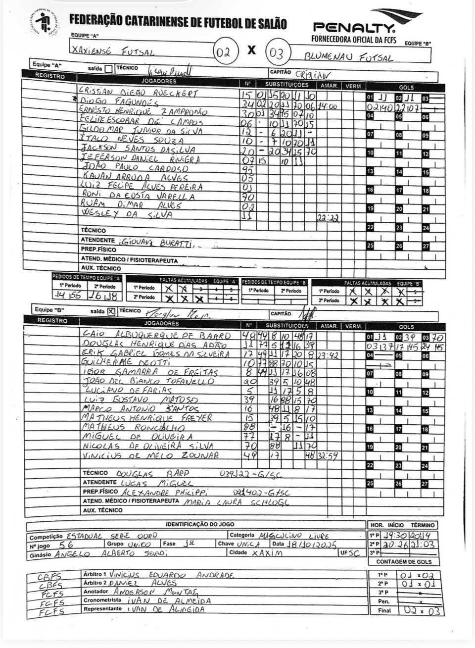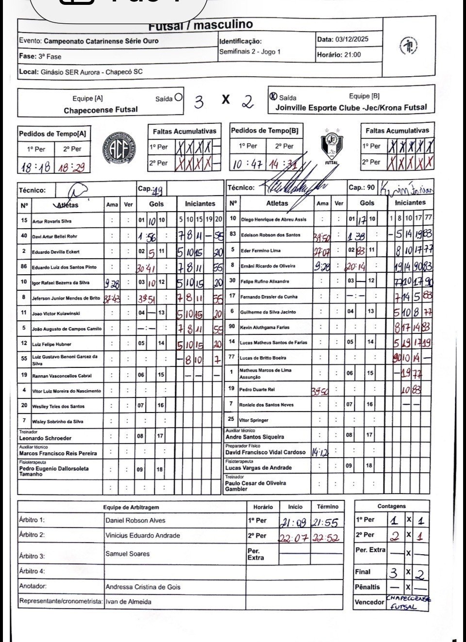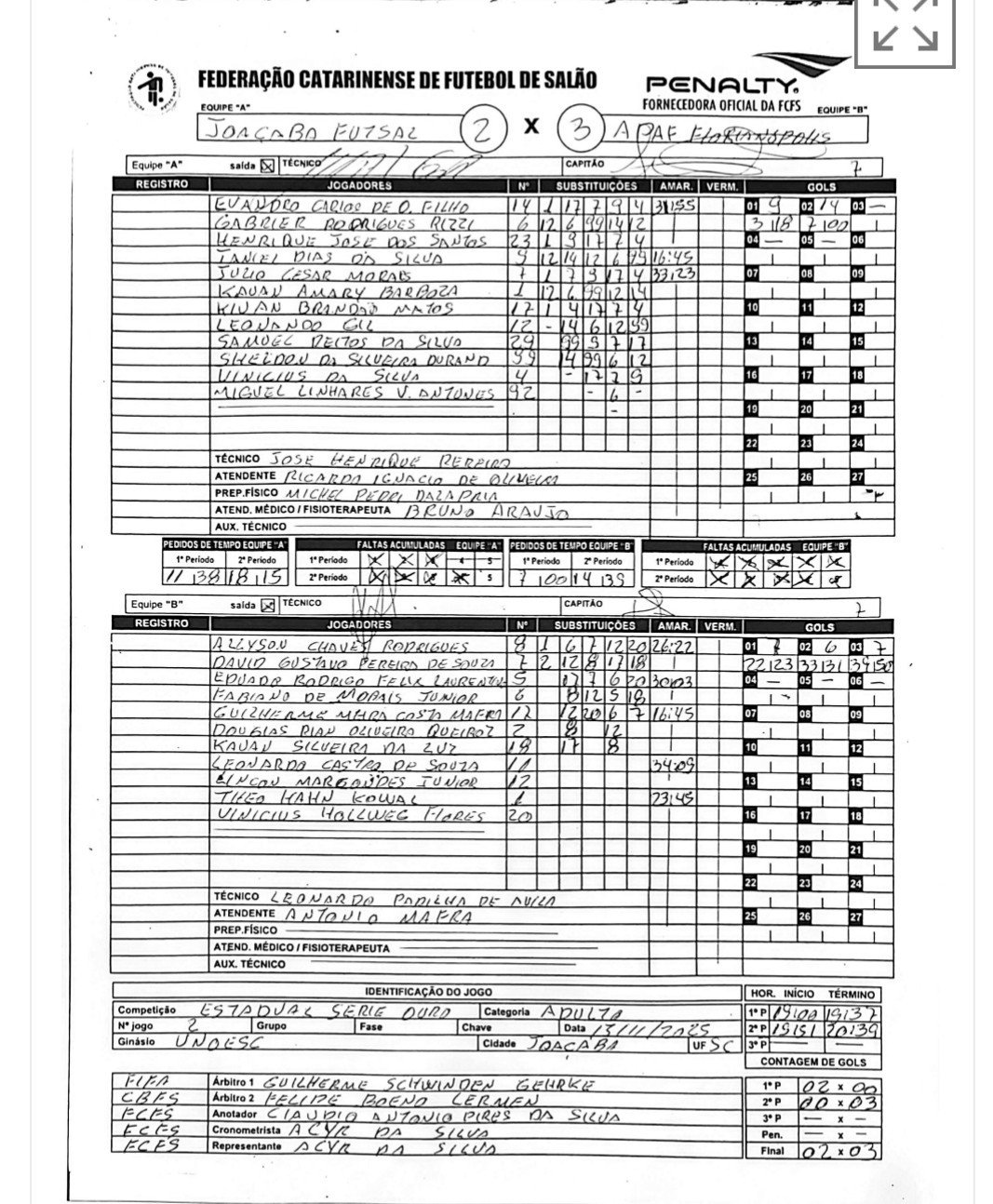 - ↑ www.futsalsc.com.br https://www.futsalsc.com.br/campeonatos/409042708192282059/serie-ouro-masc/artilharia. Consultado em 24 de dezembro de 2025 Em falta ou vazio