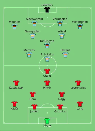 - ↑ «Bélgica goleia Hungria». UEFA. 26 de junho de 2016. Consultado em 2 de julho de 2016