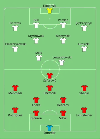 - ↑ «Full Time Summary – Switzerland v Poland» (PDF). UEFA. 25 de junho de 2016. Consultado em 2 de julho de 2016
