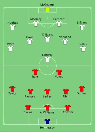 - ↑ «Full Time Summary – Wales v Northern Ireland» (PDF). UEFA. 25 de junho de 2016. Consultado em 2 de julho de 2016