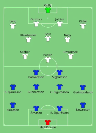 - ↑ «Iceland own goal spares Hungary defeat». UEFA.com. Union of European Football Associations. 18 de junho de 2016. Consultado em 18 de junho de 2016