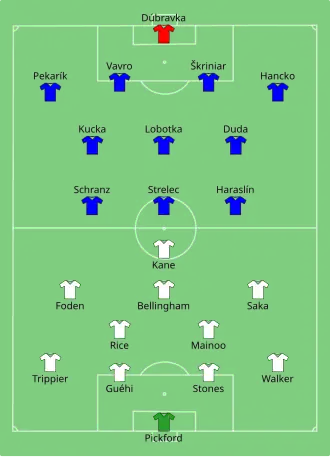 - ↑ a b «Tactical Line-ups – England v Slovakia» (PDF). UEFA.com. Union of European Football Associations. 30 de Junho de 2024. Consultado em 30 de Junho de 2024