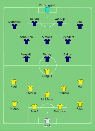 - ↑ a b «Tactical Line-ups – Romania v Netherlands» (PDF). UEFA.com. Union of European Football Associations. 2 de Julho de 2024. Consultado em 2 de Julho de 2024