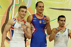 - ↑ «Men's Apparatus Finals Results Rings» (PDF). Gymnastics Results. European Union of Gymnastics. 18 de abril de 2015. Consultado em 21 de abril de 2015