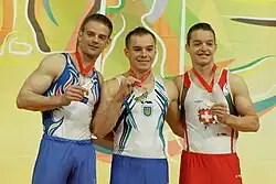 - ↑ «Men's Apparatus Finals Results Vault» (PDF). Gymnastics Results. European Union of Gymnastics. 19 de abril de 2015. Consultado em 21 de abril de 2015