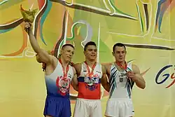 - ↑ «Men's Apparatus Finals Results Parallel Bars» (PDF). Gymnastics Results. European Union of Gymnastics. 19 de abril de 2015. Consultado em 21 de abril de 2015