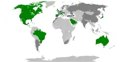 Os países em verde sediaram etapas do campeonato de 2023, enquanto os marcados em cinza escuro já sediaram um Grande Prêmio ao menos uma vez na história.