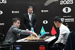 - ↑ Doggers, Peter (19 de janeiro de 2023). «Astana será sede do match Ding-Nepo do Campeonato Mundial de Xadrez da FIDE». Chess.com. Consultado em 26 de janeiro de 2023