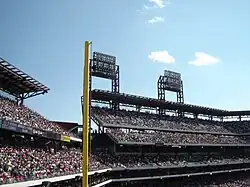 Em estádios da Major League Baseball, os foul poles são normalmente amarelos. Os do Citi Field são laranjas. No Rogers Centre, não existem foul poles, mas grandes redes suspensas do telhado servem a mesma finalidade. No Petco Park, não há foul pole no campo esquerdo; a função do poste é feita por uma tira de metal amarela ao longo da esquina do edifício Western Metal Supply Co.
