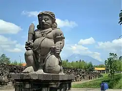 A maior parte dos maiores complexos de templos da antiga Java eram guardados por um par de estátuas de Dvarapalas, que eram os guardiões dos portões. Os gémeos gigantes geralmente flanqueiam a entrada em frente do templo ou estão nos quatro pontos cardeais. Os Dvarapalas têm a forma de gigantes ou demónios aterrorizadores, que impedem a entrada dos espíritos malignos nos recintos sagrados do templo. Na arte de Java Central, o Dvarapala é geralmente representado como um gigante corpulento bastante gordo, com um rosto feroz e olhos brilhantes redondos esbugalhados, garras salientes, cabelo encaracolado e bigodes, com uma grande barriga redonda. Usualmente segura um gada (maça) e por vezes facas como armas.