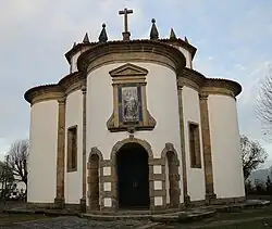 Apresenta planta circular, com uma entrada por um vestíbulo de três arcos. Sobre o arco principal abre-se um nicho com a imagem de Nossa Senhora de Guadalupe e a inscrição epigráfica "Protegam vrbem istam 1747".