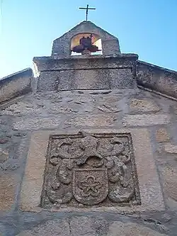 Tem no seu topo, por cima da porta de entrada, o brasão dos Carvalho, que é mencionado no "Nobiliário das Famílias Portuguesas" de Felgueiras Gaio, na identificação deste morgado, e que refere uma represenção primitiva ou diferente destas armas.