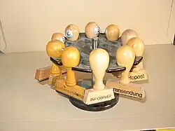 - Porta-carimbos — espécie de cabide, em diversos modelos, onde os carimbos são colocados de forma a ficar pendurados;
