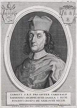 Barberini e seu irmão Maffeo desempenharam um papel na reconciliação da família Barberini com o papado (nessa fase sob o Papa Inocêncio X), após as Guerras de Castro. Maffeo se casou com uma sobrinha do Papa Inocêncio X e Carlo foi elevado a cardeal pelo Papa Inocêncio X em 1653. Foi originalmente proposto que Carlo se casasse com a sobrinha do Papa, mas em vez disso, sugeriu que seria uma carreira eclesiástica que buscava [1].