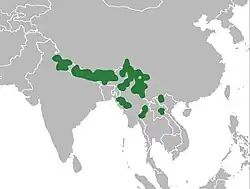 Pode ser encontrada nos seguintes países: Butão, China, Índia, Laos, Myanmar, Nepal, Tailândia e Vietname.
