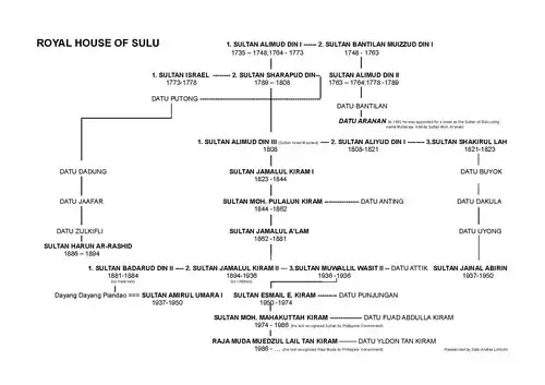 - Line of succession of the Sultans of Sulu of the Modern Era as published in the Official Gazette of the Republic of the Philippines | Linha de sucessāo do sultanato Sulu, diário oficial das Filipinas]]
