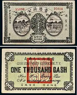 - ↑ Ulrich Theobald (13 de abril de 2016). «Qing Period Paper Money.» (em inglês). Chinaknowledge.de. Consultado em 27 de março de 2019