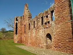 A ala ocidental, de dois pisos, alberga a entrada principal, que dá acesso ao pátio através de um passadiço em arco. Sobre o portão exterior existiam espaços onde outrora se exibiam painéis armoriais. As janelas desta fachada, de maiores dimensões do que as originais da casa-torre, estavam providas de grades de ferro, apresentando sob elas pequenas aberturas para armas de fogo. Junto à entrada situava-se a cozinha e, no piso superior, um salão de maiores dimensões e uma sala de estar. Apenas a parte ocidental da ala norte, prevista para três pisos, chegou a ser concluída, embora os Lindsay tivessem planeado completar o pátio. Esta ala dispunha de uma segunda cozinha, bem como de câmaras privadas instaladas na torre circular do canto noroeste. O acesso fazia-se através de uma torre-escada situada no pátio, da qual subsistem alguns vestígios, incluindo partes de um enquadramento de porta ricamente esculpido. Das edificações a leste e a sul subsistem apenas as fundações, que provavelmente albergavam um forno e as cavalariças.[30]