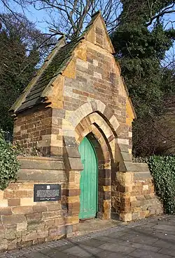 ![]() Tudo o que resta do Castelo de Northampton: uma poterna que foi desmontada de sua posição original e reconstruída no muro da Estação ferroviária de Northampton [en]. | |