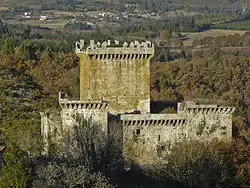 No centro do conjunto encontra-se a torre de menagem, de planta quadrada, com onze metros de lado e dividida internamente em três pavimentos. O primeiro pavimento é cego, rasgado por uma porta em estilo românico, a 5 metros do chão. O segundo pavimento eleva-se a 5 metros do chão e existem indícios que permitem admitir uma ponte interior que comunicaria esta planta com a muralha, através de uma porta em arco apontado encimada pelo escudo de armas dos Ulloa. No terceiro pavimento há um vitral de arcos apontados geminados com arquinhos em lóbulo.