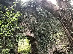 Em meados do século, as ruínas medievais de castelos tornaram-se novamente elegantes. Elas eram consideradas um contraponto interessante à agora convencional arquitetura clássica Palladiana e uma forma de dar um certo fascínio medieval aos seus novos proprietários.[281] O historiador Oliver Creighton sugere que a imagem ideal de um castelo na década de 1750 incluía "silhuetas quebradas e suaves e [uma] aparência decadente e áspera".[282] Em alguns casos, o campo ao redor de castelos existentes foi remodelado para destacar as ruínas, como no Castelo de Henderskelfe, ou no retrabalho de "Capability" Brown no Castelo de Wardour [en].[282] Alternativamente, ruínas podiam ser reparadas e reforçadas para apresentar uma aparência mais adequada, como no Castelo de Harewood [en].[282] Em outros casos, motas, como a do Castelo de Groby [en] em Leicestershire, eram reutilizadas como bases para folies dramáticas, ou novas folies de castelo podiam ser criadas do zero ou reutilizando alvenaria original, como ocorreu durante a construção da Torre Conygar [en] para a qual várias partes do Castelo de Dunster foram canibalizadas.[283]