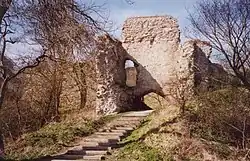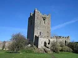 A Irlanda permaneceu governada por reis nativos até o século XII, em grande parte sem o uso de castelos. Havia uma história de fortificações irlandesas chamadas ráths, um tipo de anel [en], alguns dos quais eram muito bem defendidos, mas que geralmente não são considerados castelos no sentido usual da palavra.[95] Os reis de Connacht [en] construíram fortificações a partir de 1124, que chamaram de caistel ou caislen, do latim e francês para castelo, e houve considerável debate acadêmico sobre até que ponto estes se assemelhavam aos castelos europeus.[96]