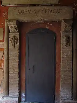 Esta catacumba aparece nos documentos antigos com dois nomes. O mais utilizado e conhecido é "San Lorenzo", uma referência ao mártir cristão mais conhecido sepultado no cemitério hipogeu, São Lourenço. O "Depositio Martyrum" (metade do século IV) recorda o sepultamento no dia 10 de agosto nos seguintes termos: "quarto idus Augustas Laurentii in Tiburtina" ("10 de agosto, Lourenço na Via Tiburtina"). Esta fonte não cita o nome do cemitério, um sinal de que, já na época, ele era conhecido com o nome do mártir e não o do proprietário do terreno. Outras fontes, por outro lado, identificam a catacumba com o nome de "Ciriaca", a proprietária do terreno no qual foi escavada a catacumba: da mesma forma, o Liber Pontificalis e uma "Paixão" de São Lourenço do século VI, que especifica a sepultura do mártir como "in via Tiburtina in praedio Cyriacae viduae in agro Verano" ("na Via Tiburtina, no terreno da viúva Ciríaca no Campo Verano"). Em outras fontes mais recentes (século VIII), Ciríaca já identificada como "beata".