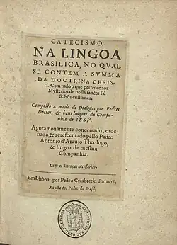 O Catecismo na língua brasílica, no qual se contém a suma da doutrina cristã, publicado em 1618 por Antônio de Araújo, foi o primeiro dos catecismos publicados em tupi antigo e é, também, o mais longo texto de que se tem conhecimento nessa língua.[1]:104 Ele orientou, por quase dois séculos, os missionários na obra de evangelização no Brasil Colônia.[2]:6 Foi uma adaptação do catecismo publicado em 1602 pelos jesuítas Marcos Jorge e Inácio Martins. Além disso, sabe-se que José de Anchieta, já em 1595, tinha o desejo de publicar uma doutrina cristã.[3]:2