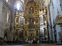 O retábulo principal, considerado uma das obras mais notáveis do barroco espanhol[1] , classificado por alguns como de estilo neoclássico[2] é uma obra do século XVII, da autoria de Alonso de Balbás, que consta de talhas de madeira policromada da autoria de Gregorio Fernández. Das pinturas que o decoram, destacam-se a Anunciação e a Adoração dos Pastores, de Francisco Ricci, a Adoração dos Reis de Luis Fernández e a Circuncisão de Matheo Gallardo.[1][3]