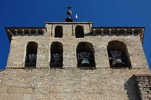 Na fachada frontal da catedral encontra-se o átrio e a fachada, cujo arco de maior raio, semicircular, enlaça com a nave central, de abóbada de canhão, do interior do templo. Na fachada sul encontra-se outro pórtico, com arco de volta perfeita e tímpano modificado no Renascimento.