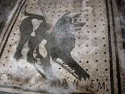 - ↑ «Pompeii guard dog mosaic back on show» (em inglês). 27 de julho de 2015