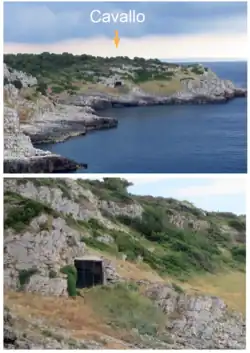 - ↑ Benazzi, S., Katerina Douka, Cinzia Fornai, Catherine C. Bauer, Ottmar Kullmer, Jiří Svoboda, Ildikó Pap, Francesco Mallegni, Priscilla Bayle, Michael Coquerelle, Silvana Condemi, Annamaria Ronchitelli, Katerina Harvati & Gerhard W. Weber "Grotta del Cavallo: Description of the site and history of excavations." Nature: Supplementary Information, Nature Publishing Group, 02 Nov. 2011, retrieved 12 Nov. 2015