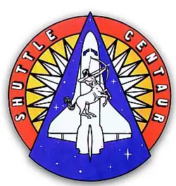 O projeto Ônibus Espacial-Centaur precisava estar pronto para o lançamento em maio de 1986, a apenas três anos de distância. O custo de um atraso foi estimado em US$ 50 milhões (equivalente a US$ 146 milhões em setembro de 2025).[72] Não cumprir o prazo significaria esperar mais um ano até que os planetas estivessem alinhados novamente.[73] O projeto adotou um logotipo de missão representando um centauro mítico emergindo do Ônibus Espacial e disparando uma flecha em direção às estrelas.[72] Larry Ross, Diretor de Sistemas de Voos Espaciais do Centro de Pesquisa Lewis,[74] colocou o logotipo em papelaria do projeto e itens como porta-copos e bottons de campanha [en]. Um calendário especial do projeto Ônibus Espacial-Centaur foi produzido, cobrindo 28 meses, de janeiro de 1984 a abril de 1986. A capa exibia o logotipo com o lema do projeto, inspirado no filme Rocky III: "Vai nessa!".[72]