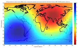 - ↑ Huber, W (17 de janeiro de 2014). «What is Centroid of all lands of Earth?» [Where is the centre of continental land area]. Stack Exchange. GIS