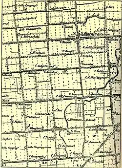 Depois de delimitar a cidade, com eixos paralelos aos dois primeiros, formando uma grade ortogonal uma outra grade era formada para delimitar o território agrícola envolvente, em princípio com os mesmos eixos.[6]