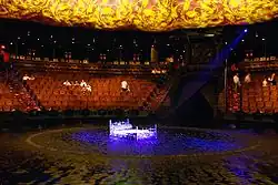 Para a preparação do espectáculo, trabalharam no palco durante 18 dias e permaneceram em completo sigilo sobre os detalhes do evento. Para a montagem, se retirou temporariamente a grama do campo para definir o cenário com o total 10.000 m². [5].
