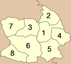 A província está subdividida em 6 distritos (amphoes) e 2 subdistritos (king amphoes ). Os distritos e subdistritos estão por sua vez divididos em 53 comunas (tambons) e estas em 474 povoados (moobans).