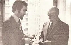 ![]() Charles Berlitz (à direita) e Antonio Las Heras (Revista "Pájaro de Fuego") | |