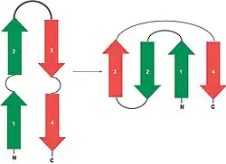 O motivo chave grega é um exemplo de uma estrutura super secundária de proteína. Esta consiste de padrões de arranjo espacial de estruturas secundárias que são comuns a muitas proteínas não relacionadas. O motivo ou domínio chave grega consiste de 3 folhas beta antiparalelas conectadas por segmentos polipeptídicos curtos, enquanto que a quarta folha se liga a terceira por um fragmento mais longo. As ligações de hidrogênio ocorrem entre a primeira e quarta folhas e a segunda e terceira folhas. Esse motivo recebe esse nome por se assemelhar ao um desenho ornamental da Grécia antiga.[1]