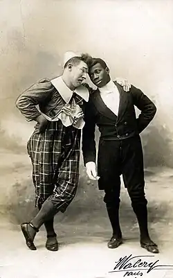 Essa comédia era do gênero pastelão (como quase todas do período) e seguia o roteiro de fazer Chocolat um personagem condizente com o imaginário e os preconceitos que vigiam então; um personagem que aos poucos se transforma no estereótipo do bode expiatório negro: bobo, infantil e simpático. Chocolat, porém, lutou contra o estereótipo diversificando constantemente suas habilidades e a observação cuidadosa das esquetes mostra um personagem que não se limita aos papéis estereotipados. A frase "Je suis Chocolat", que significa "Estou enganado", foi popularizada pelos diálogos de seus esquetes, introduzidos pela dupla em 1901.[7] Em 1905, o contrato do Nouveau Cirque não foi renovado. Alguns culparam o caso Dreyfus e a politização das questões raciais. Também houve questionamentos na época de políticos negros e mestiços representando as antigas colônias do império francês. A carreira conjunta atingiu o auge com o Folies Bergère até serem considerados antiquados com a chegada do cakewalk aos palcos da Europa.[8]