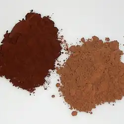 Processo holandês de cacau (à esquerda) em comparação com o processo Broma, ou "natural", cacau (à direita)