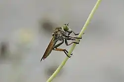 Nas florestas de abeto-pinheiro no Maine, as larvas de Choristoneura fumiferana em estágios finais são predadas por vespas, como A. adiabatus [en] e E. leucomelas. Essa predação é importante para controlar as populações de lagartas em povoamentos florestais.[40]