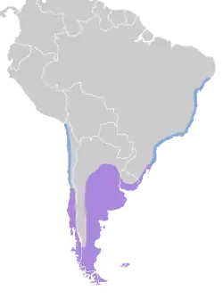 Pode ser encontrada nos seguintes países: Argentina, Brasil, Chile, Ilhas Malvinas, Paraguai, Geórgia do Sul, Ilhas Sandwich do Sul e Uruguai.
