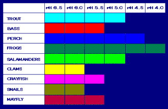 Por exemplo, a presença de elevada acidez na água (pH < 5) inibe a produção das enzimas que permitem que as larvas da maior parte das espécies de peixes de água doce, incluindo a maioria da espécies de truta, escapem das suas ovas.