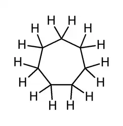 Cicloheptano é o cicloalcano com um anel formado por sete carbonos.