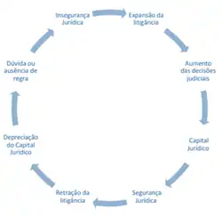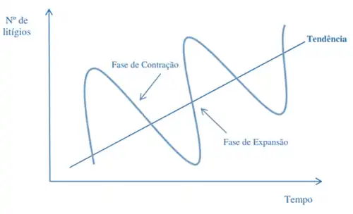O ciclo da litigância não se refere a um fenômeno isolado, mas sim, a um conjunto de fenômenos. Compostos por períodos de expansão e de retração das taxas de litigância; e de criação, reposição e depreciação do capital jurídico. O correto seria falar em ciclos da litigância, já que estes coexistem e seguem um processo continuo em diversas áreas do direito.[2]